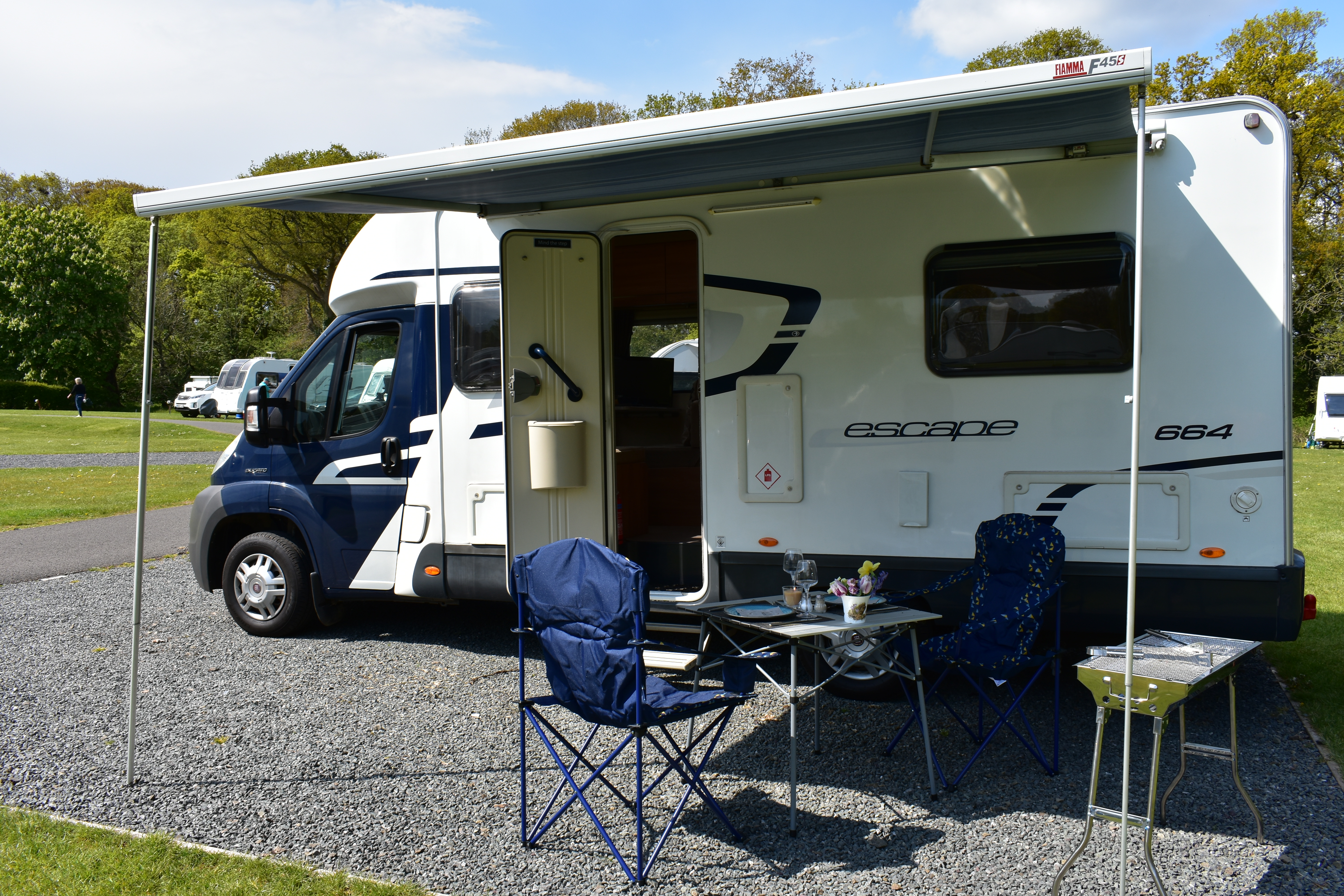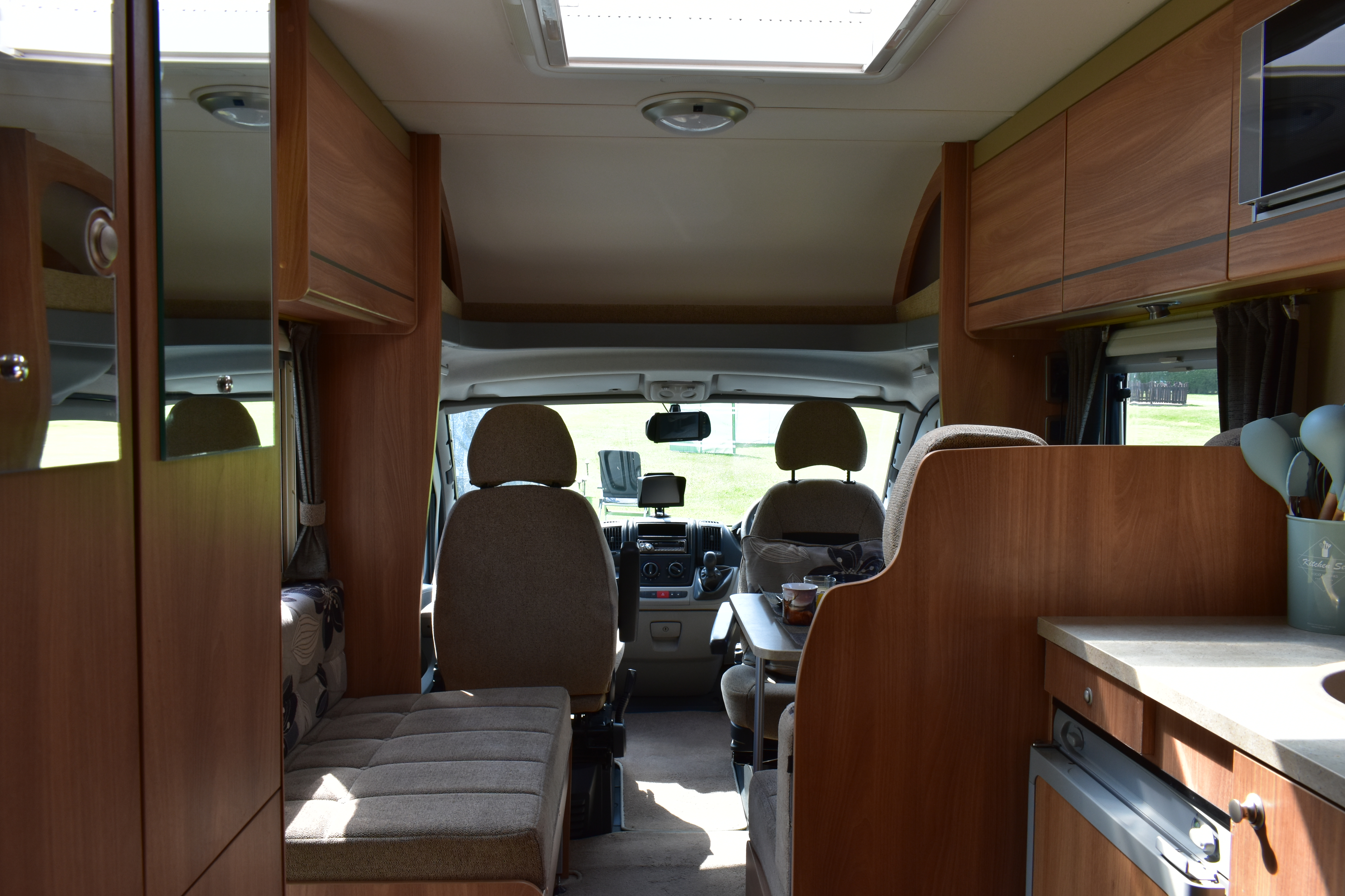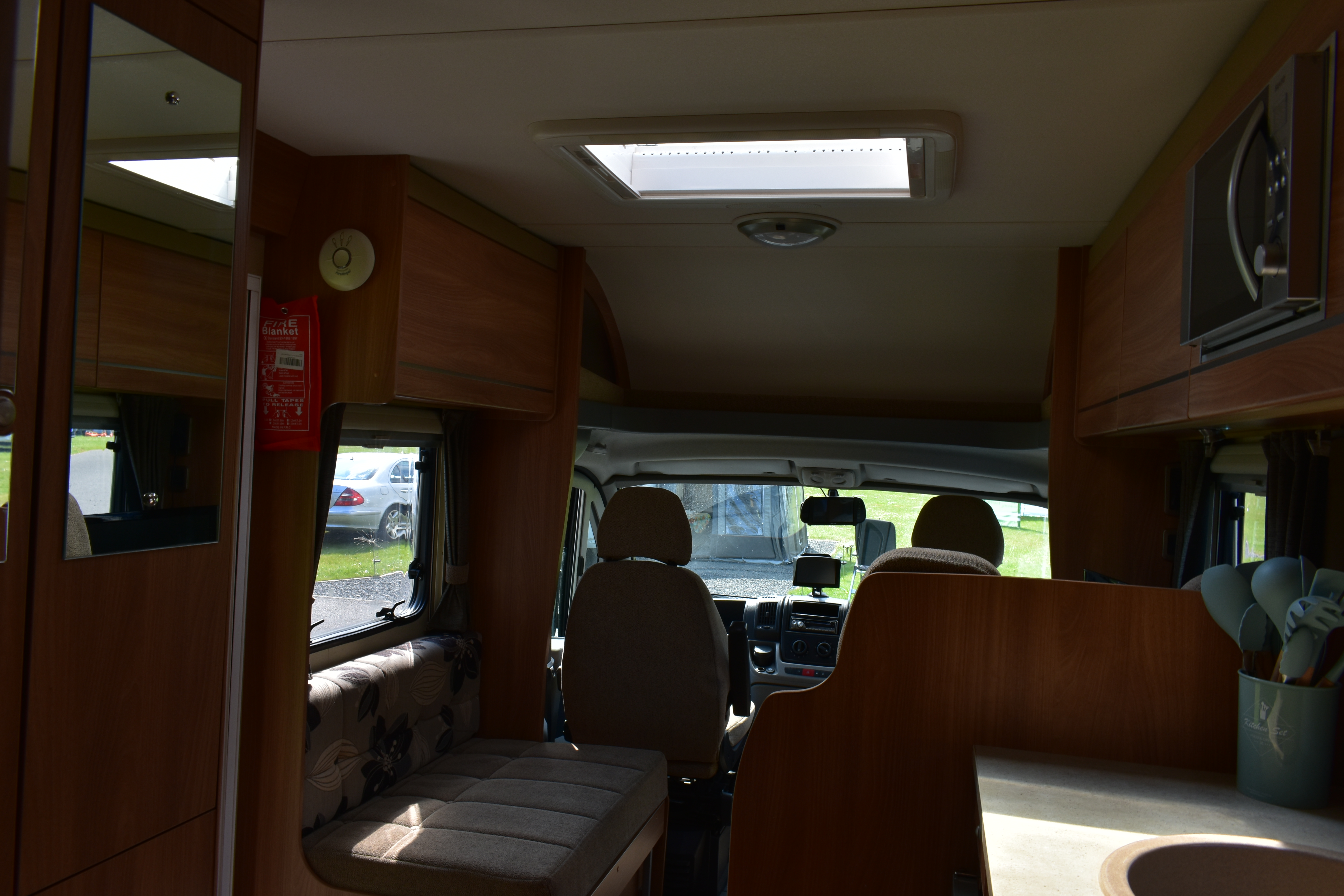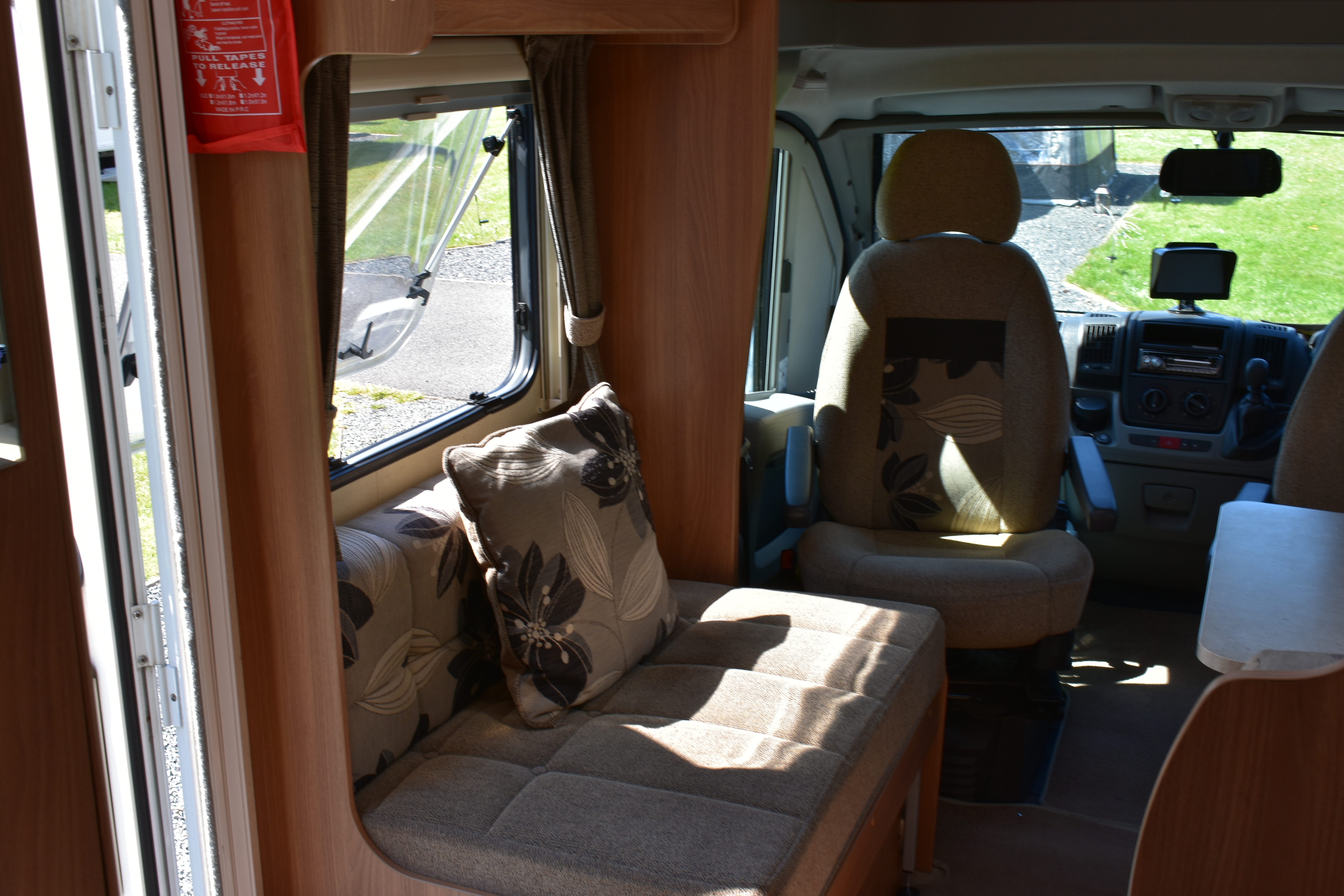 The motorhome is right hand drive with a manual gear box and diesel engine. Spacious external storage access. Electric step. Two large sun roofs and large windows in living and bedroom area. Fly nets on windows and doors. Blinds on all windows and sun roofs. Easy built in wind out awning.