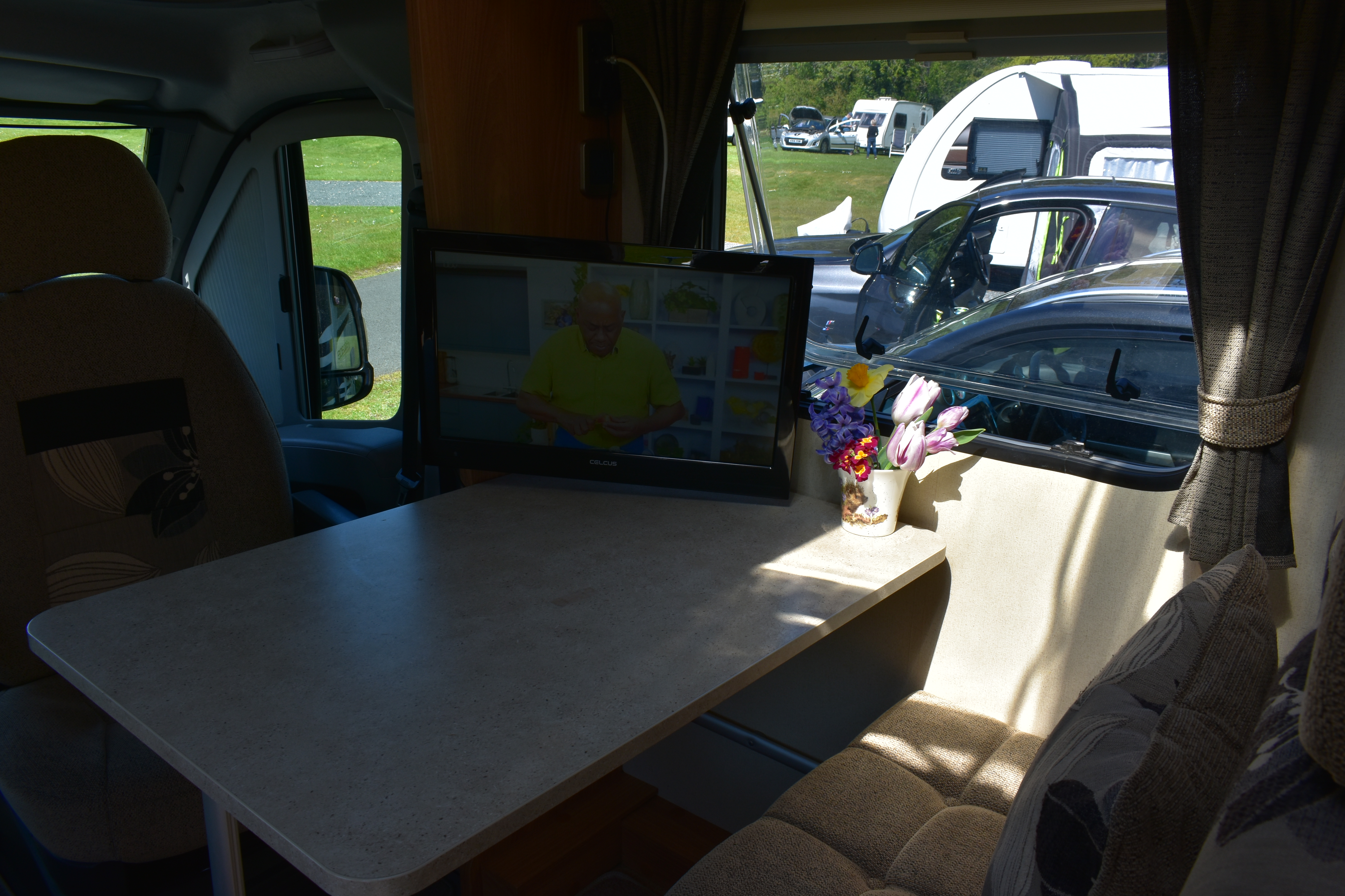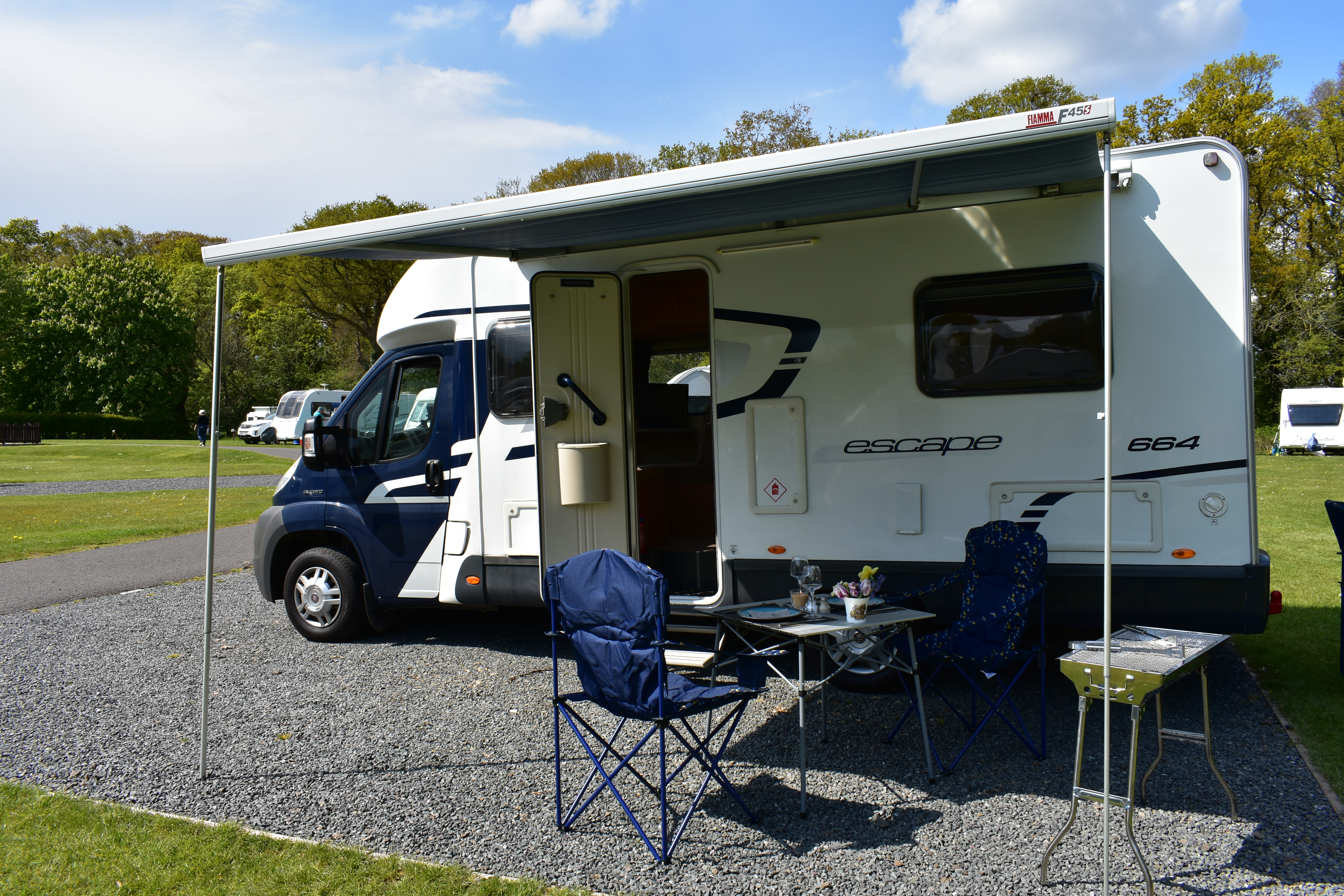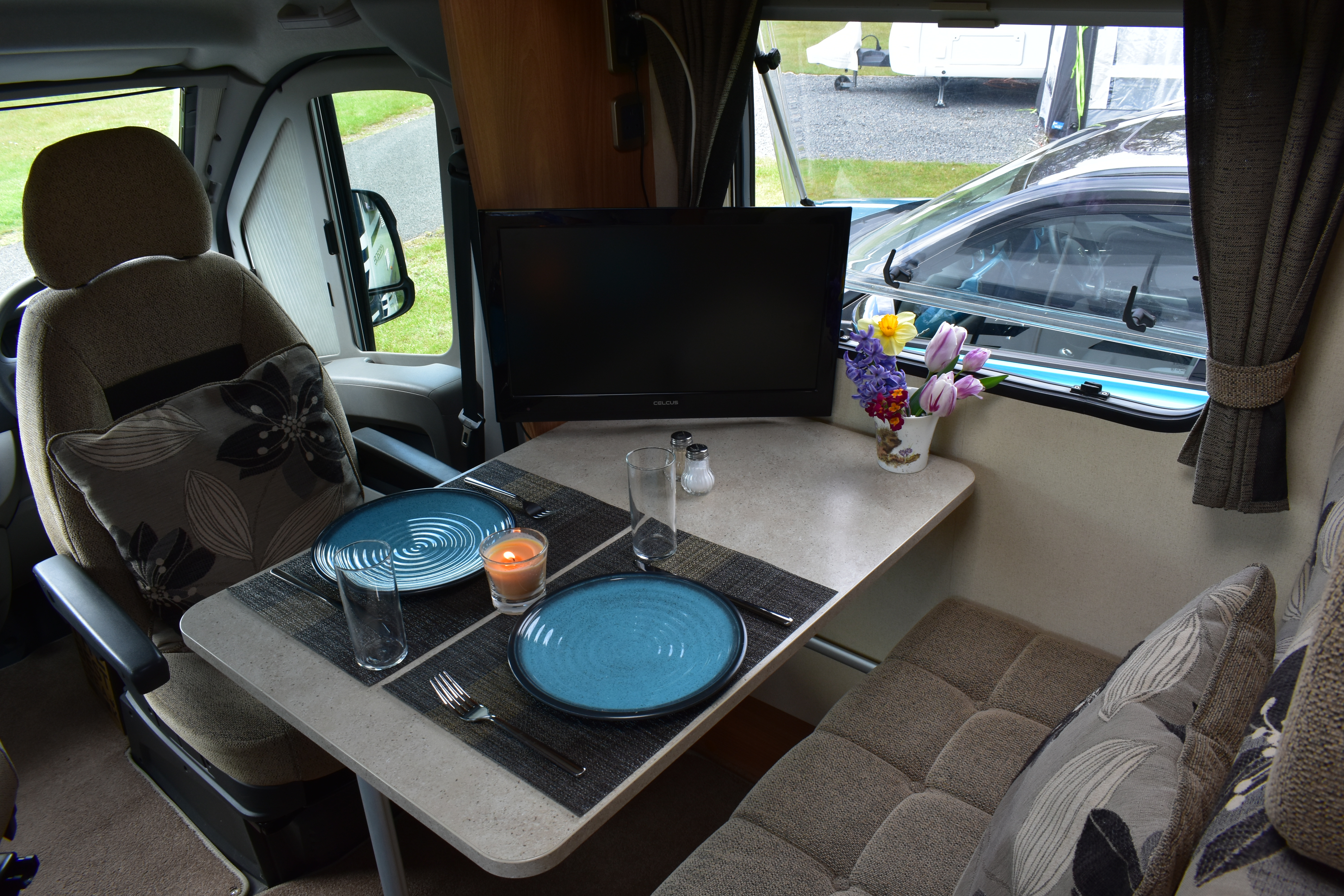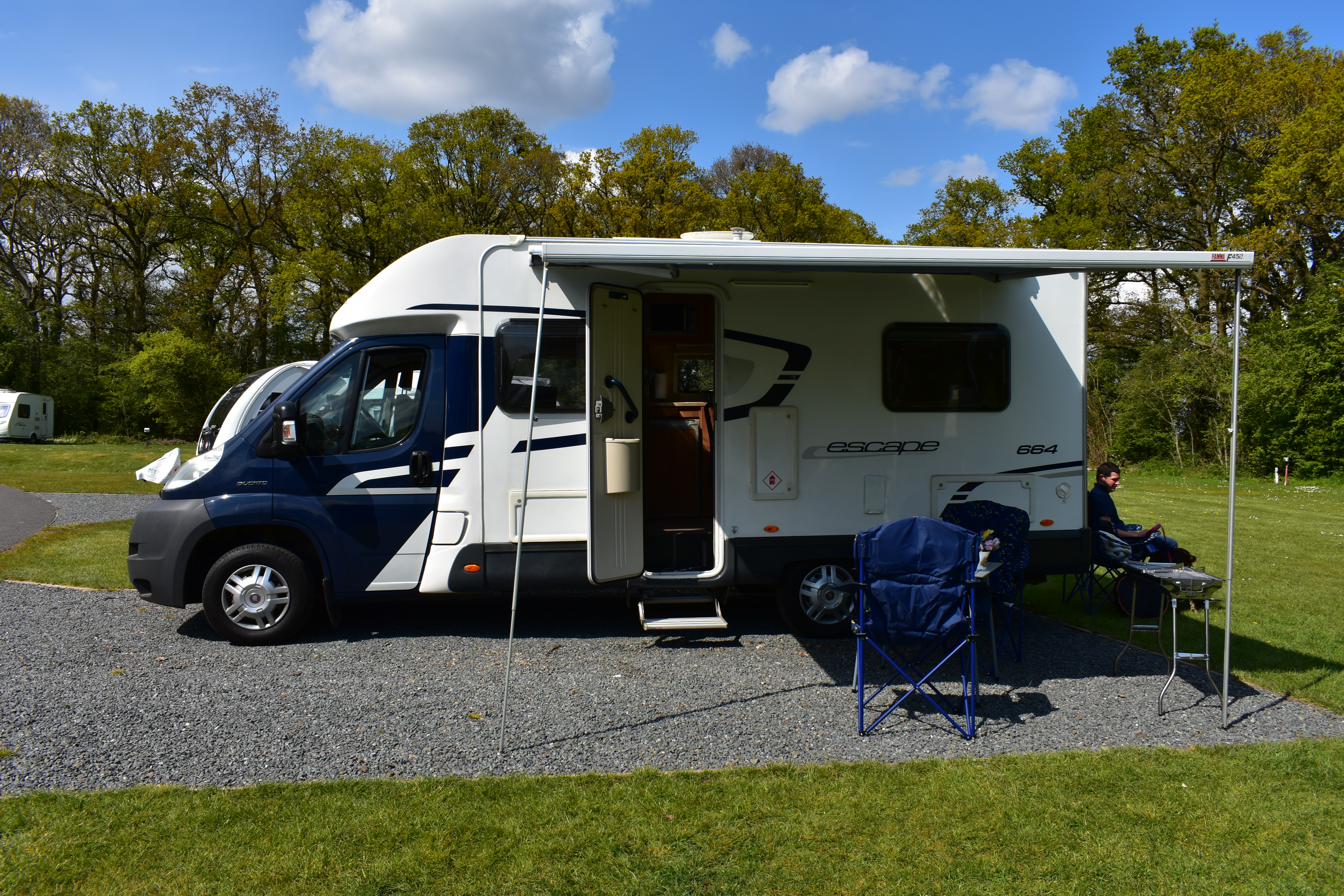 The motorhome is right hand drive with a manual gear box and diesel engine. Spacious external storage access. Electric step. Two large sun roofs and large windows in living and bedroom area. Fly nets on windows and doors. Blinds on all windows and sun roofs. Easy built in wind out awning.